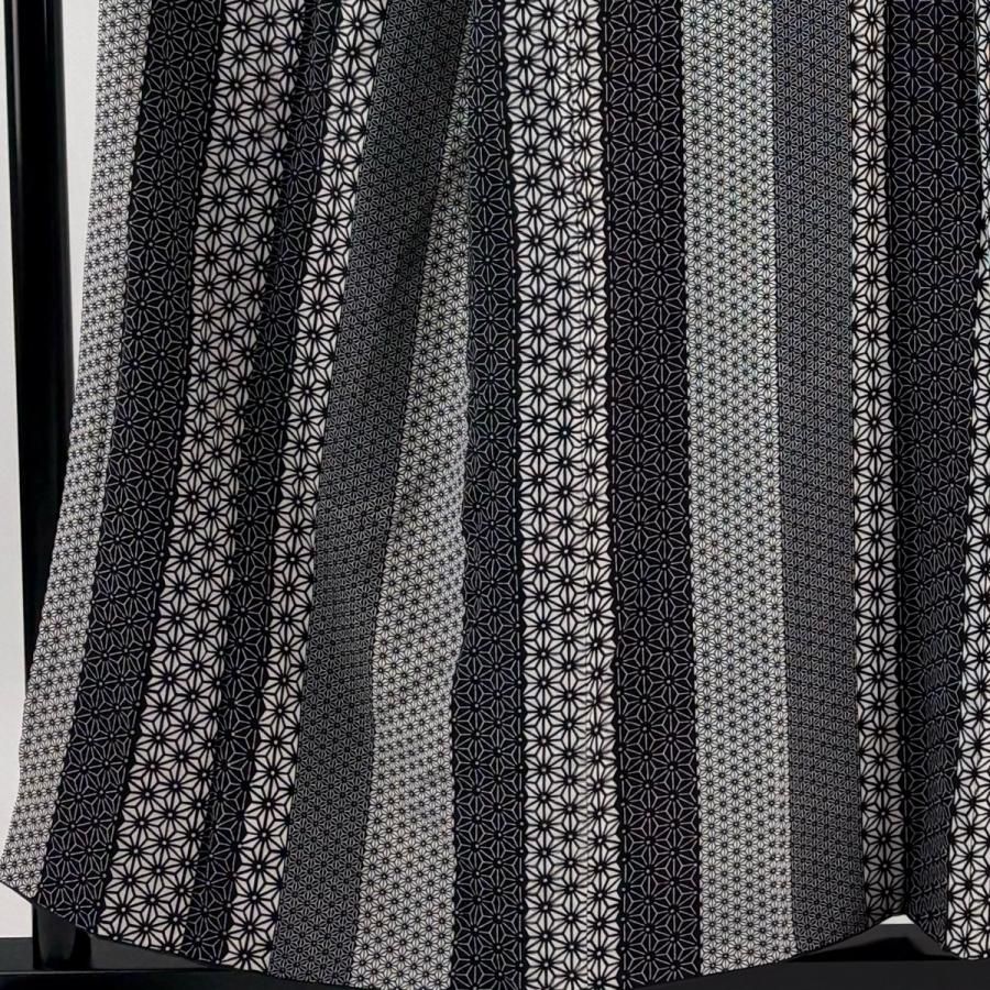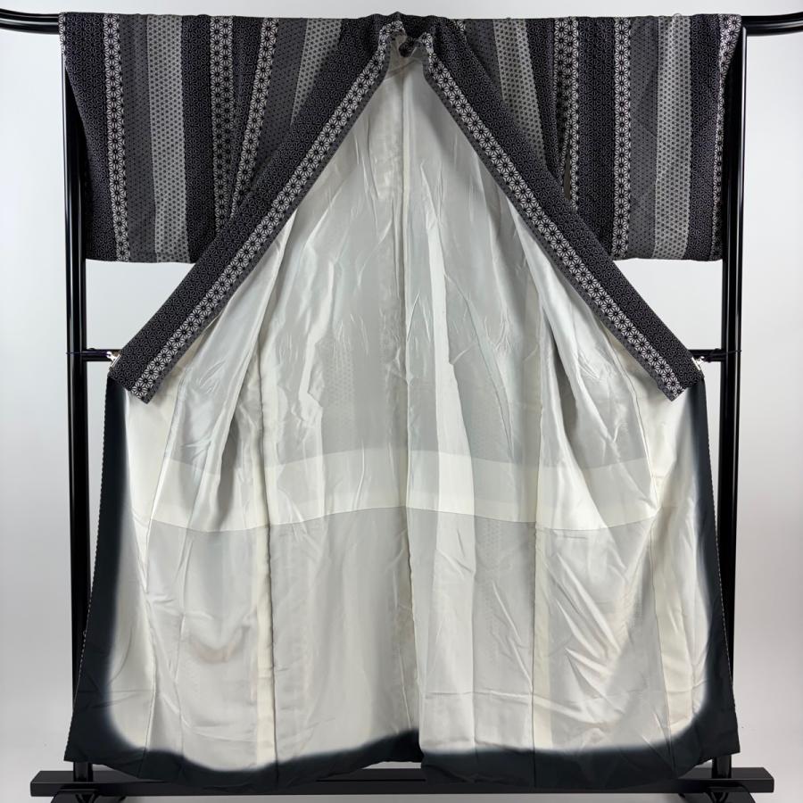 江戸小紋 身丈156cm 裄丈67.5cm L 袷 麻の葉 縞 黒 正絹 秀品 中古