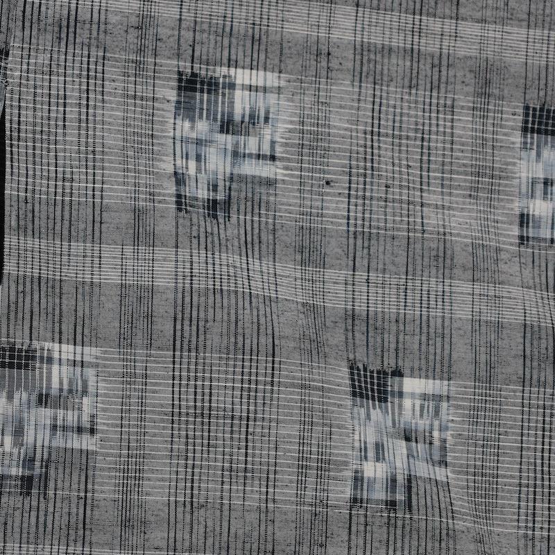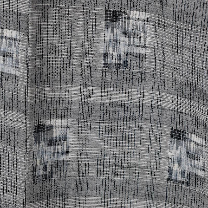 着物 紬 単 十日町 グレー 黒 手織り /1101