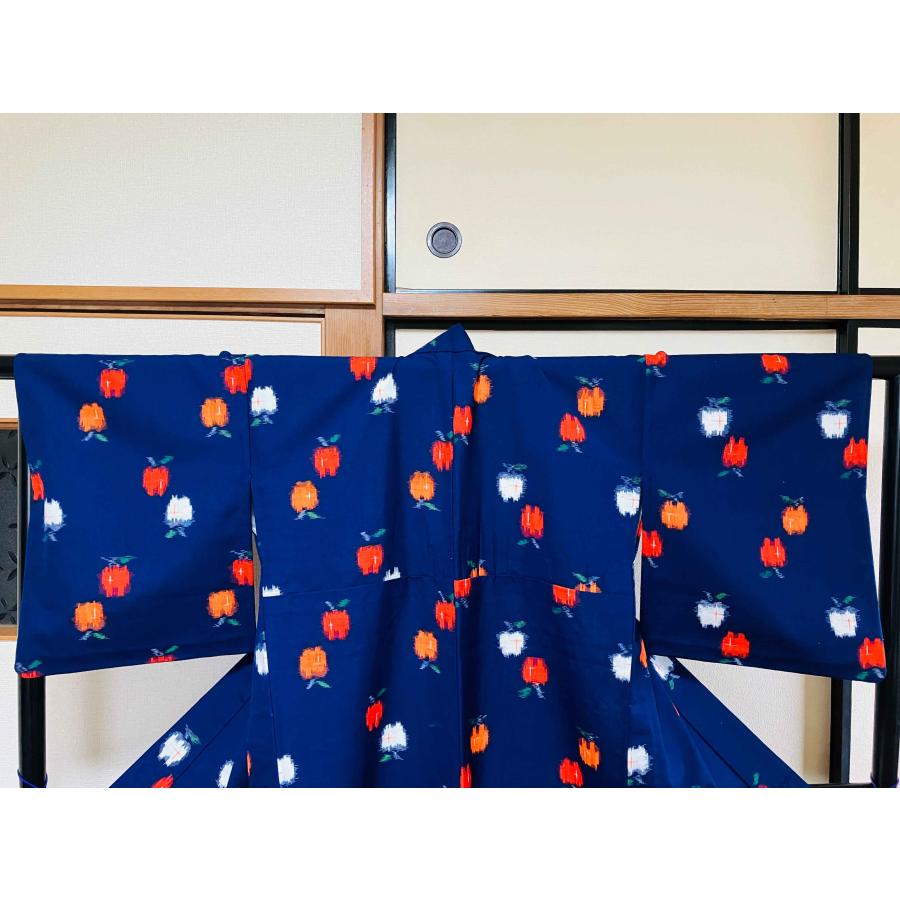 着物 小紋 正絹 / 藍色系 林檎 リンゴ 身丈約159cm 裄丈約66cm 袖幅約49cm 後幅30cm 前幅24.5cm TCS着物 W10